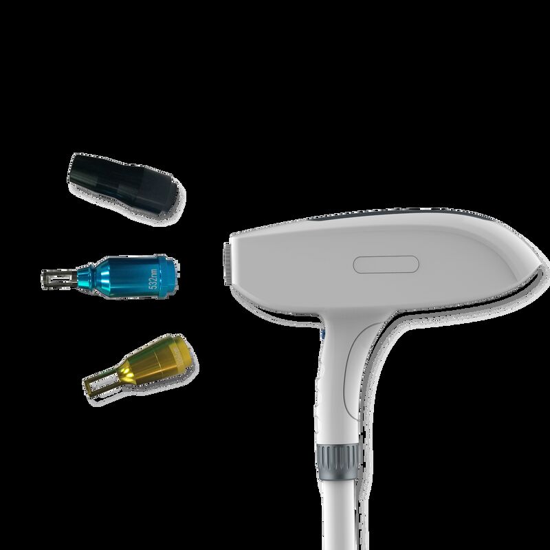 Lazerin, her biri farklı dalga boyları sunan iki değişken tedavi ucu vardır: 1064 nm ve 532 nm.